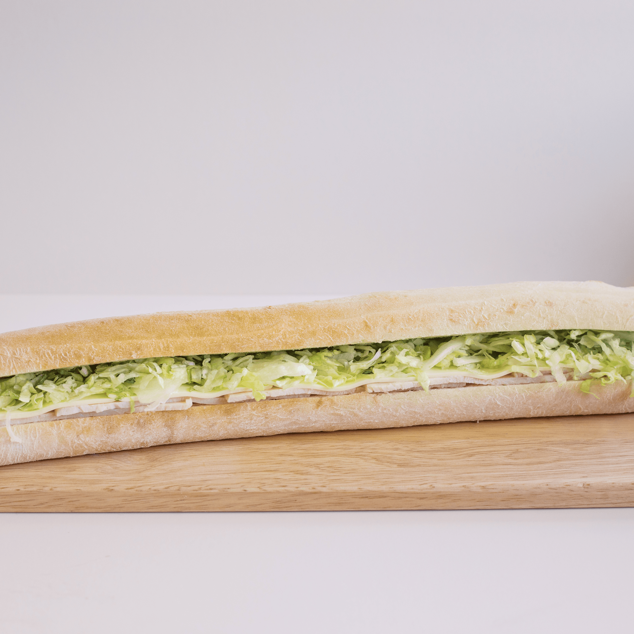 Roasted sliced turkey breast, on a half loaf of our fresh baked bread with Swiss cheese and lettuce